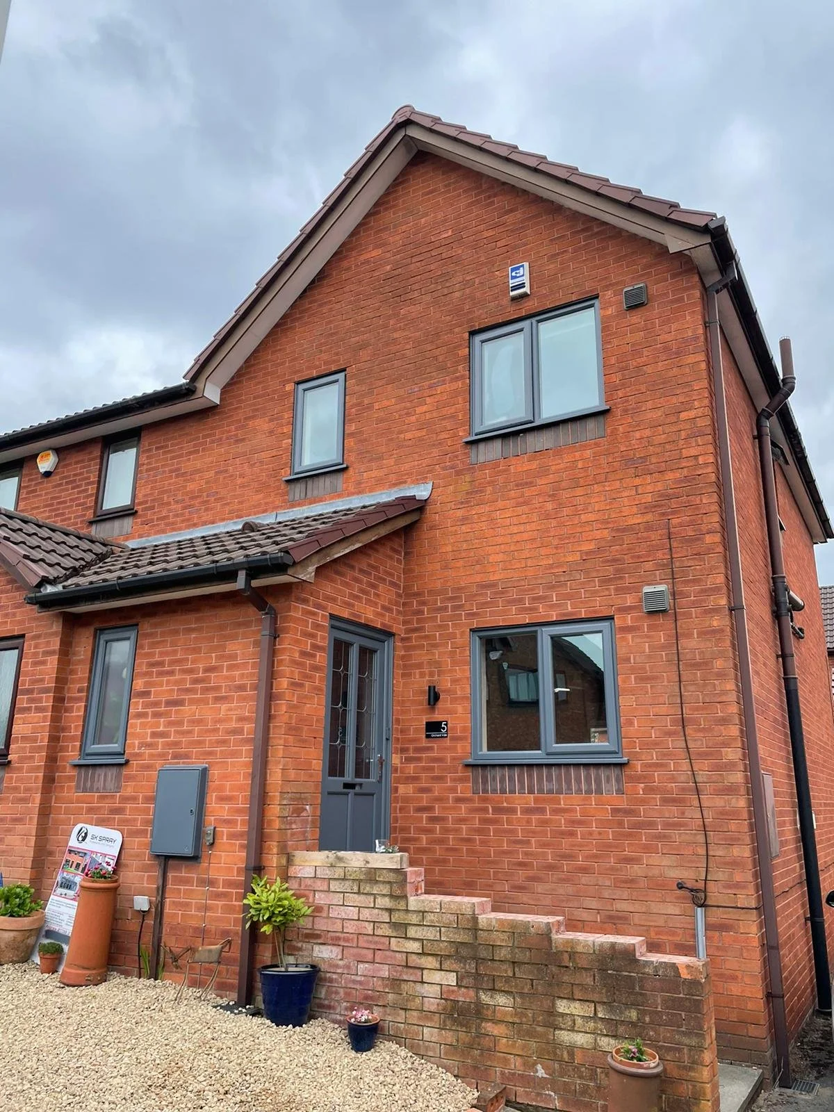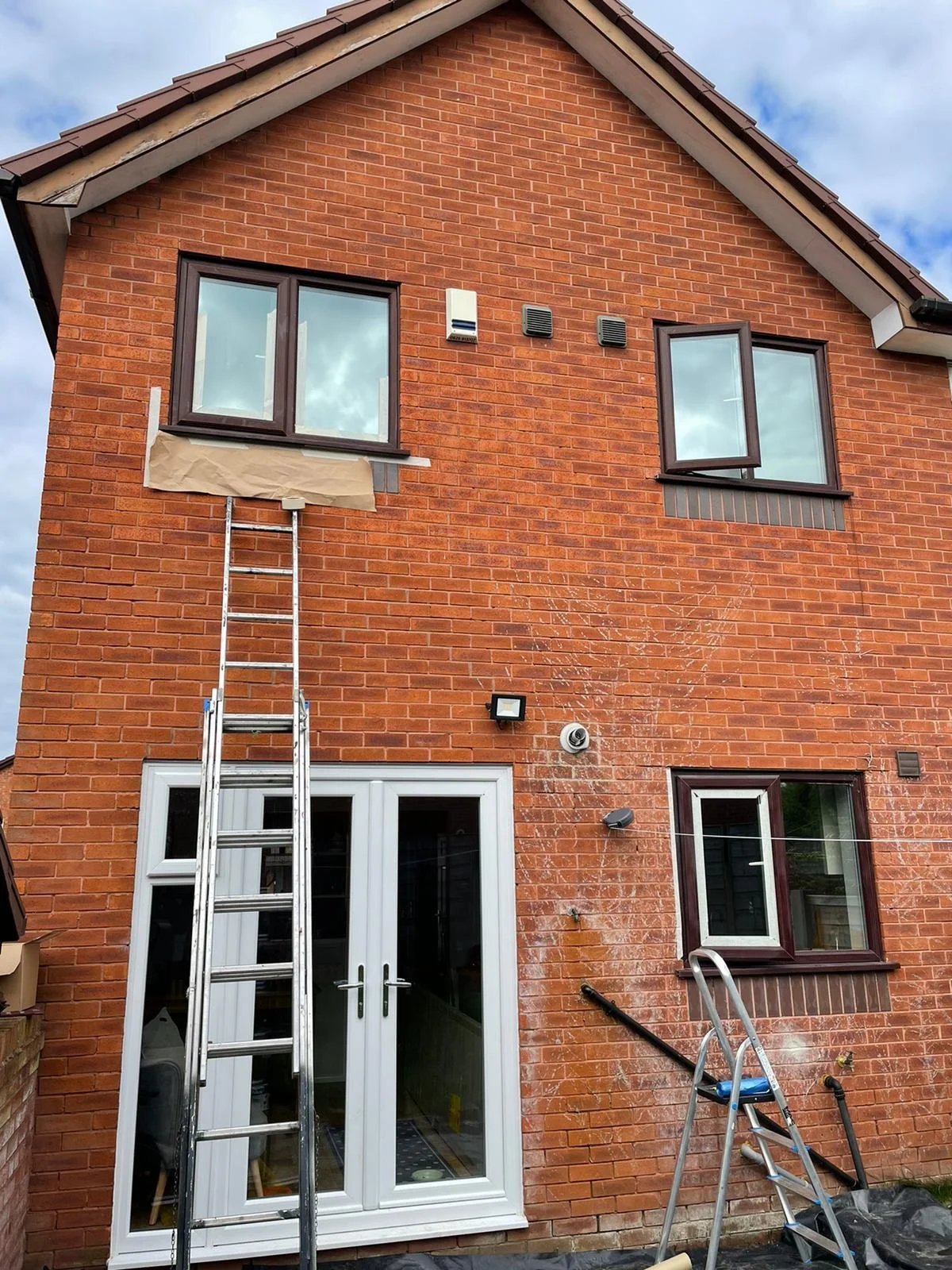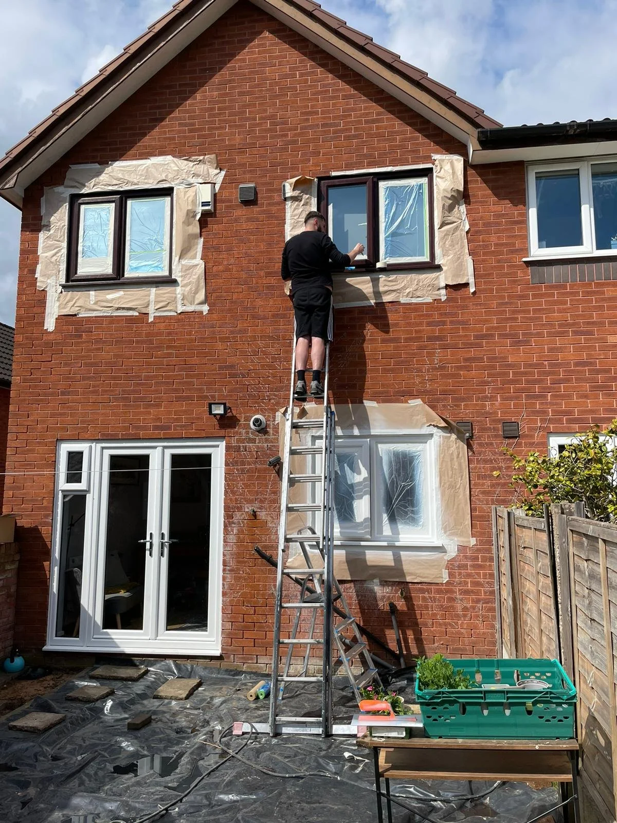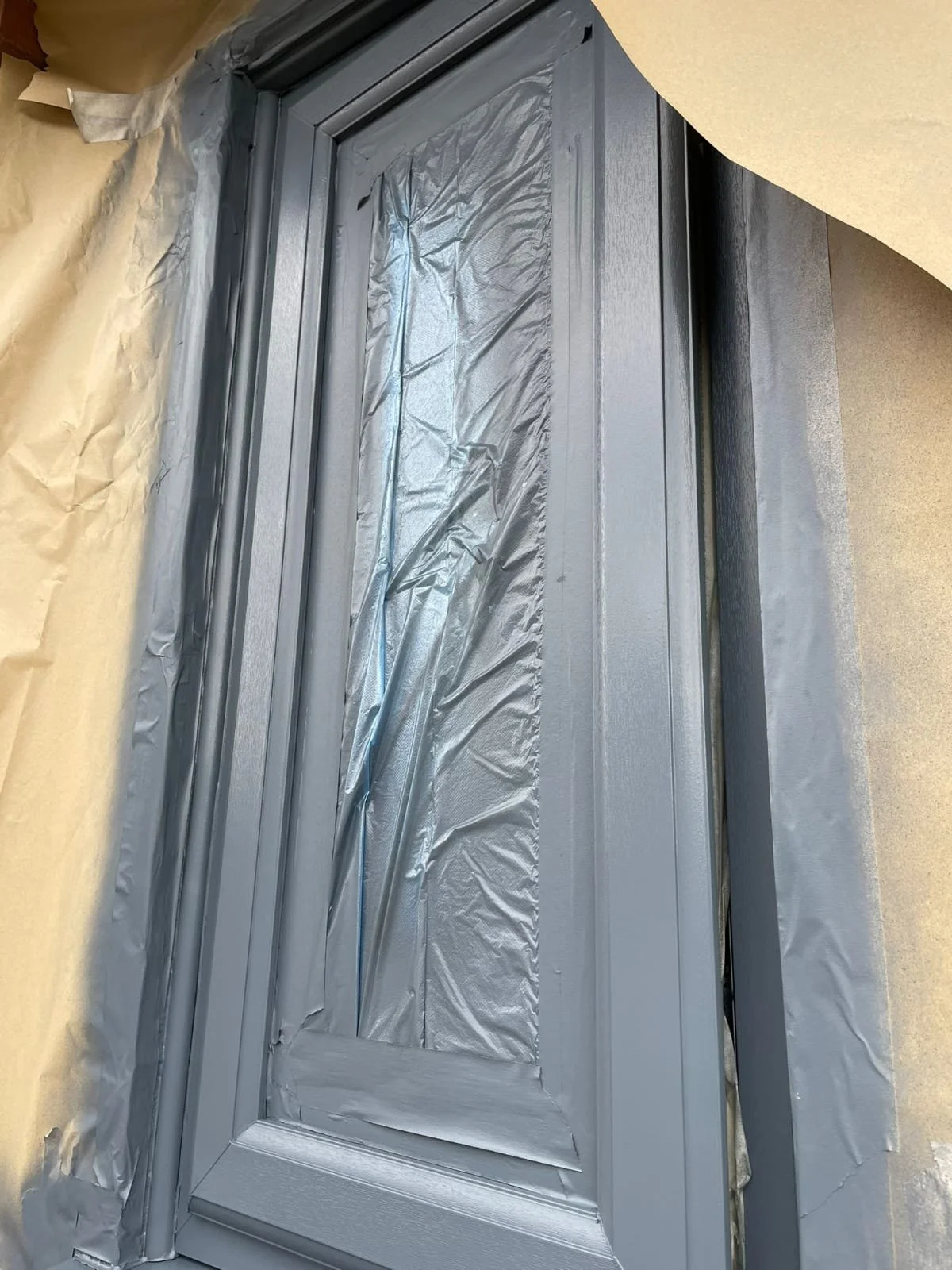 We coated and recoloured the outdated brown uPVC of this property. On the back, white to match the newly fitted doors. Anthracite on the front.